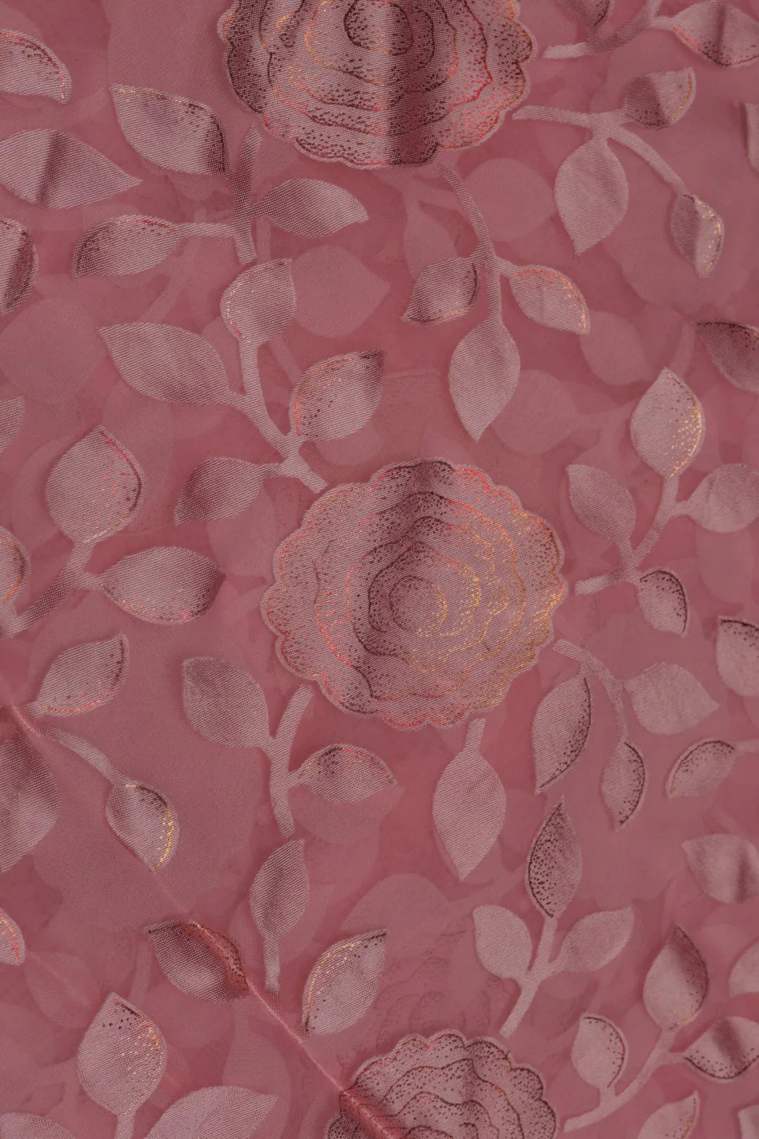 This Brasso fabric features bold foil embroidery, creating a striking contrast that exudes modern elegance. The intricate embroidery, combined with the luxurious texture of the fabric, makes it perfect for crafting standout pieces for festive and formal occasions.