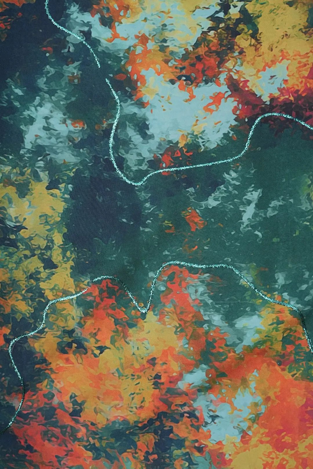 Woodland Digital Print Fabric with Aqua Glitter