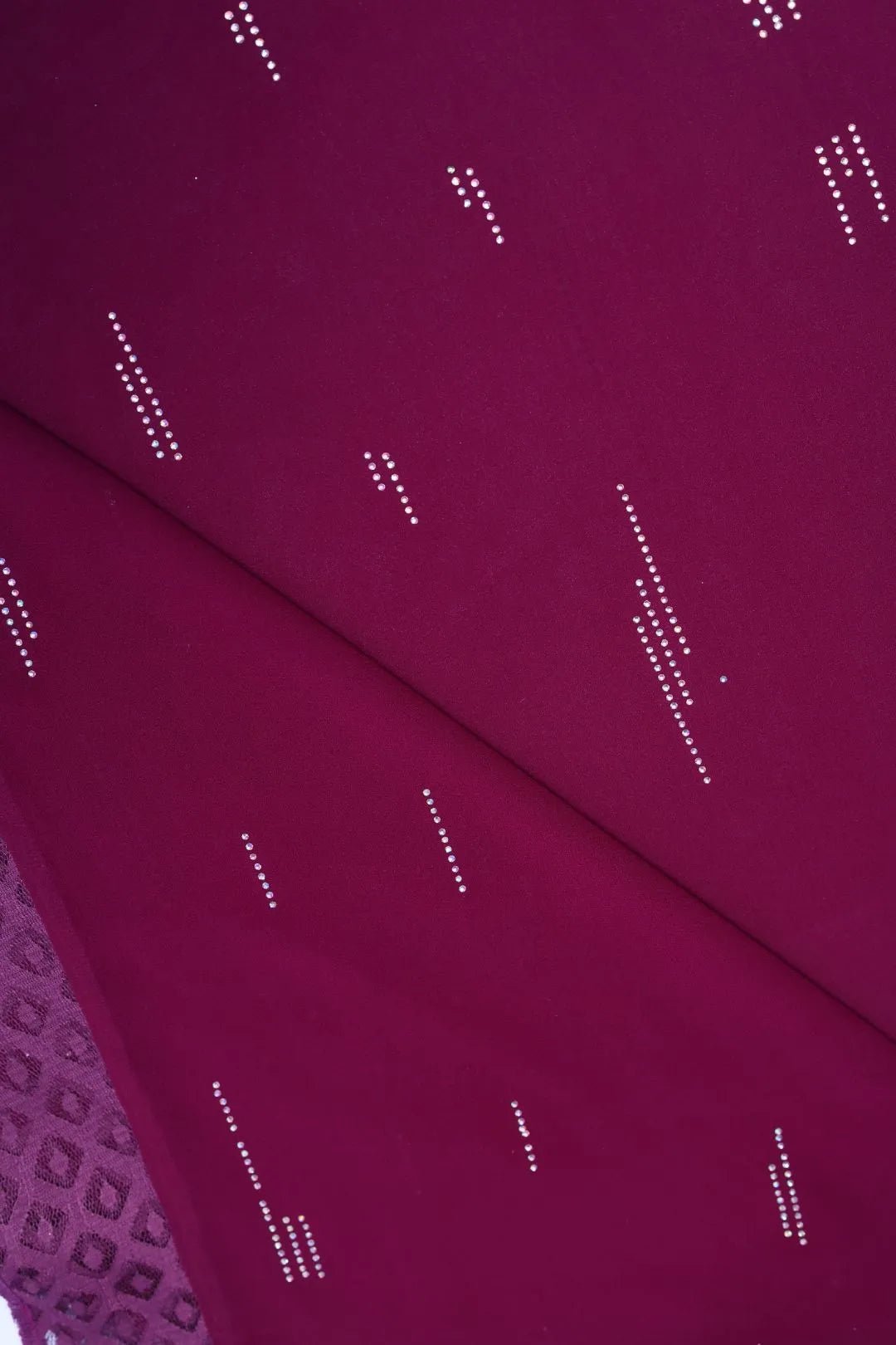 Add a pop of color with this luxurious fuchsia stole. Made from smooth, sheer fabric, it features a scattered horizontal micro-dashed beading pattern in white and silver. Wine Designer Stole Perfect for evening events, festive occasions, or as a vibrant statement accessory.